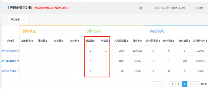 所以在优化标题的时候,需要到单品分析里面下载宝贝最近一个周期的引流词数据,7天、或者14天,下载后对比是否存在标题内的关键词没有引流,或者引流效果极低的词可以删掉或替换。