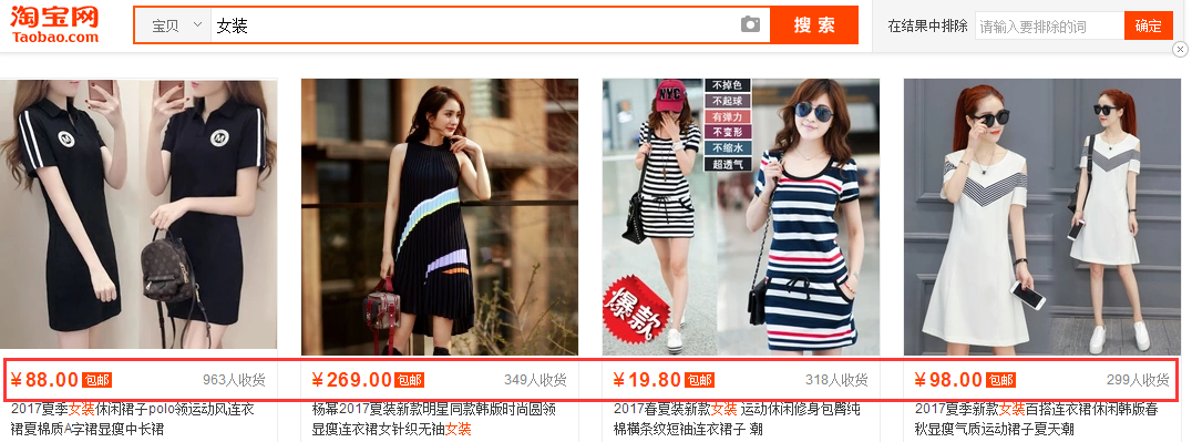 这里我还是用女装为例子,筛选后的价格带是这样:10%的买家喜爱0—21元的;41%的买家喜爱21—91元的;36%的买家喜爱91—205元的;8%的买家喜爱205—365元的;5%的买家喜爱365元以上的。这个就是官方系统给出来的一个数据,搜索关键词后,首页就会显示的。而你属于哪个区间的价格就去进行筛选一下价格带,这样就可以帮你筛选掉很多的竞争对手了。