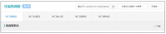 那这时候问题又来了,如果你的店铺数据很少,怎么才能知道消费者的需求是什么,怎么去优化点击率呢?这时候你可以从生意参谋的市场功能模块里面的行业热词榜去进行分析,找到你所在的类目,看最近7天的无线端数据。